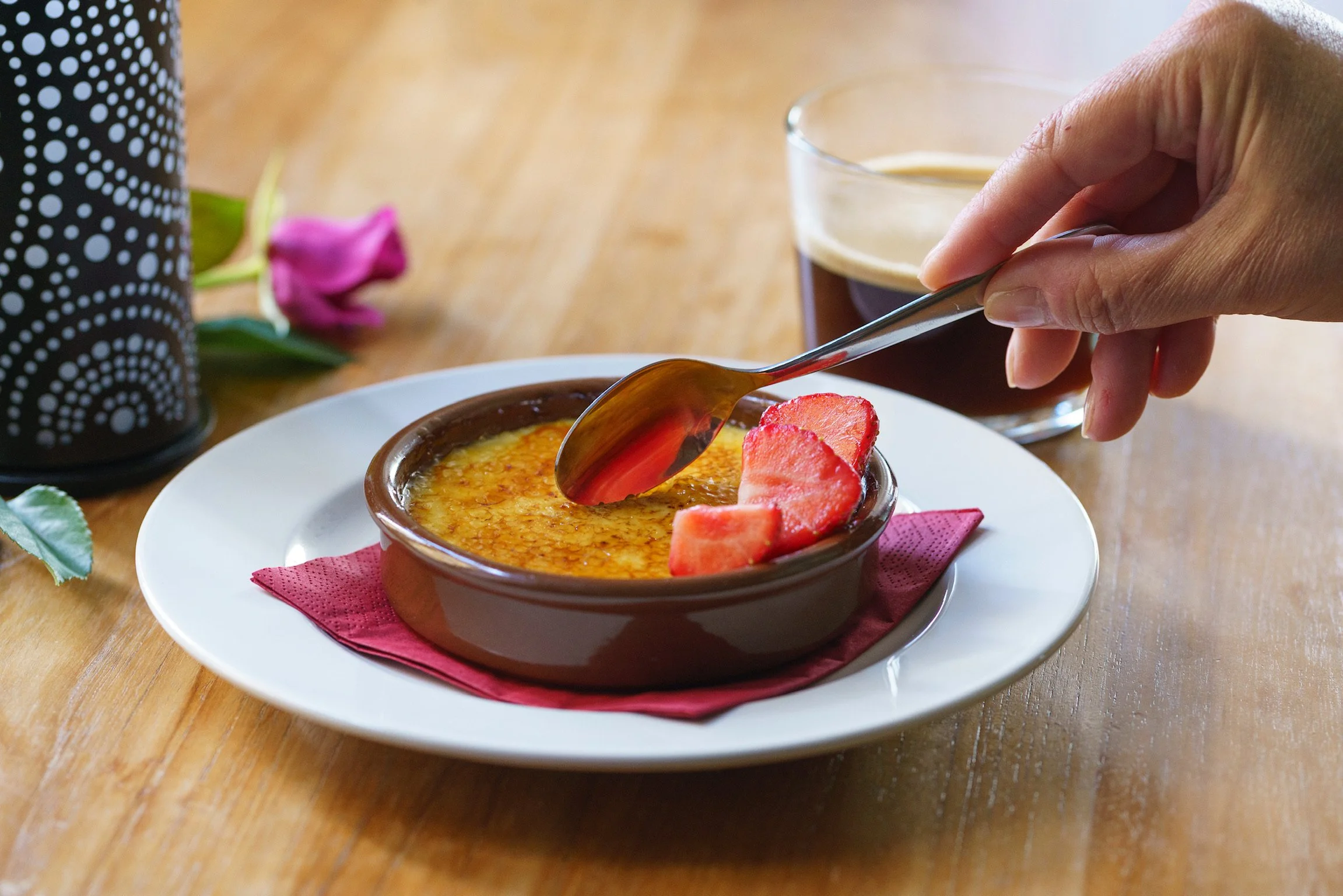 Beef tartare, Steak frites with béarnaise sauce and crème brûlée